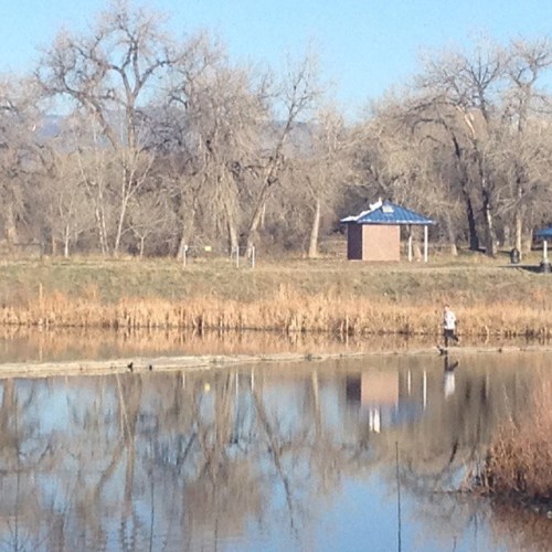 I have recently started running regularly along the St Vrain River from Roger’s Grove to Golden Ponds. The other day my running partner and I discovered this row of rocks that allows you to cross over the middle of one of the lakes.